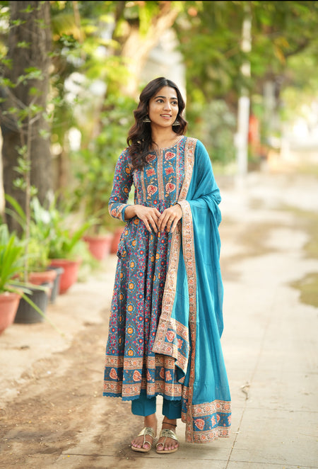BHAMA-(BLUE WITH OLIVE)-VC DIWALI 25Regular price Rs. 3,850.00