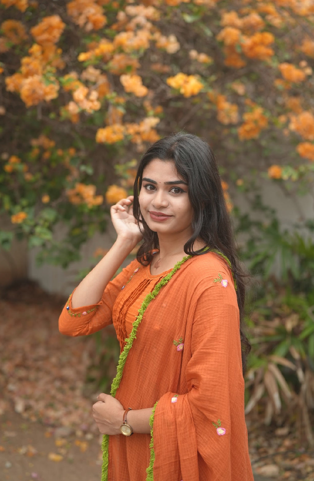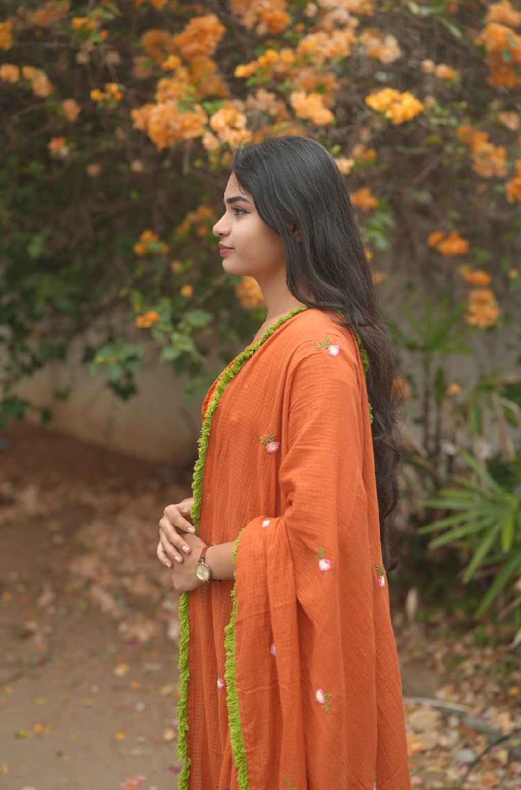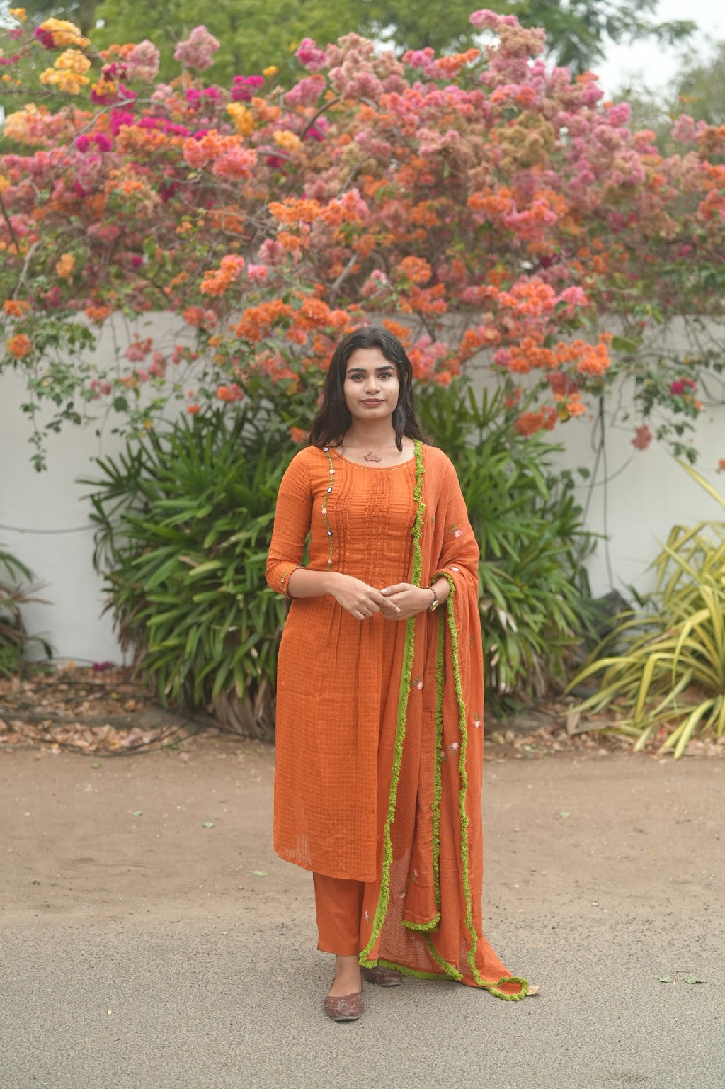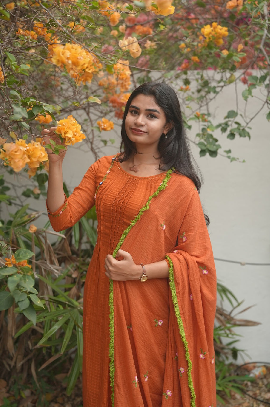 Pure Cotton lotta top and cotton bottom with fusion of kota dupatta comes with a full embroidery and frilled yoke