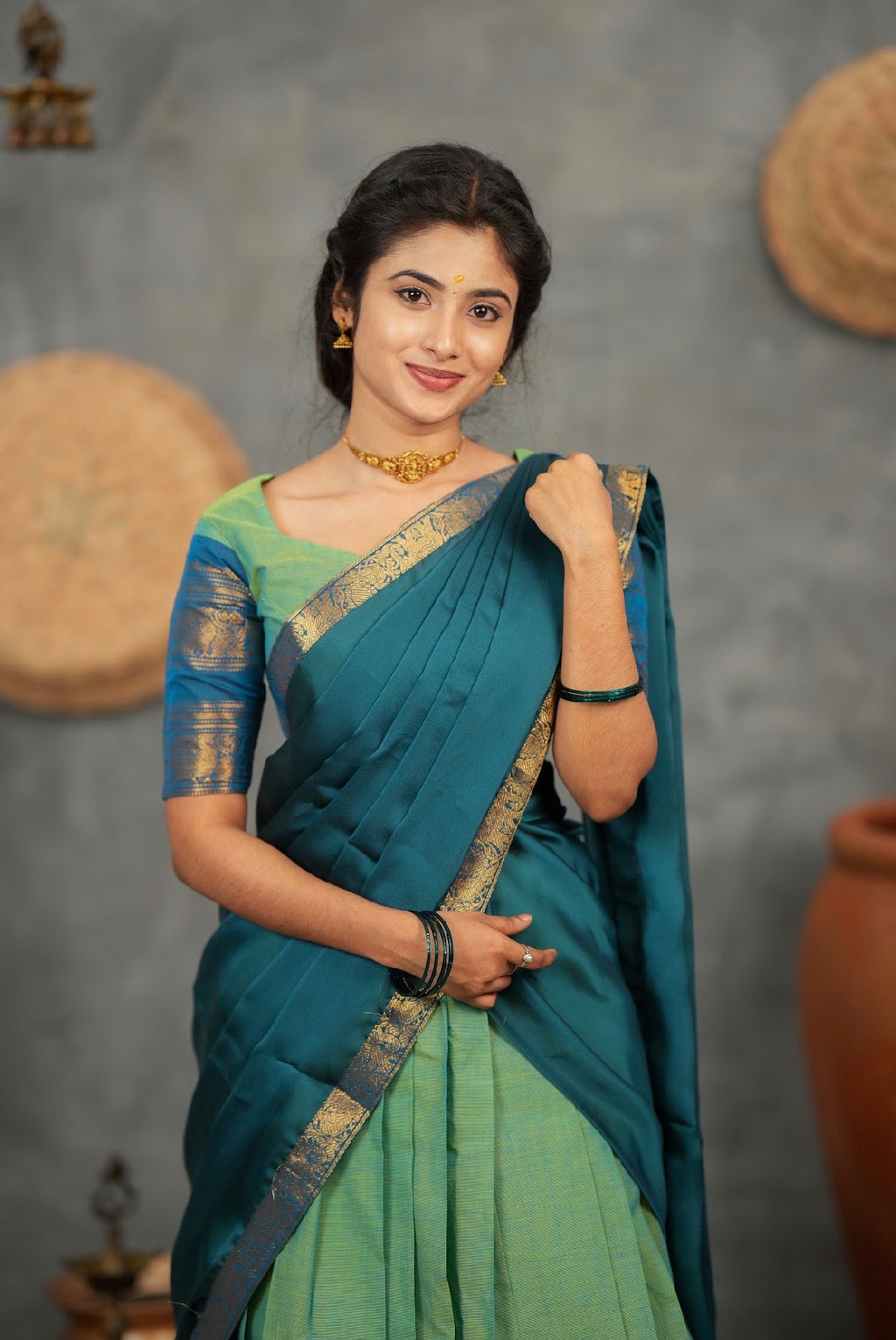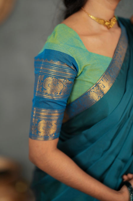 RANGANAYAKI-Blue with oliveSale price Rs. 4,499.00Regular price Rs. 5,299.00You savedRs. 800.00 OFF