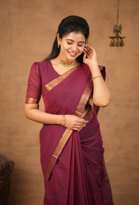 LEEELA-Mangalgiri cotton-Plum red.Regular price Rs. 2,500.00