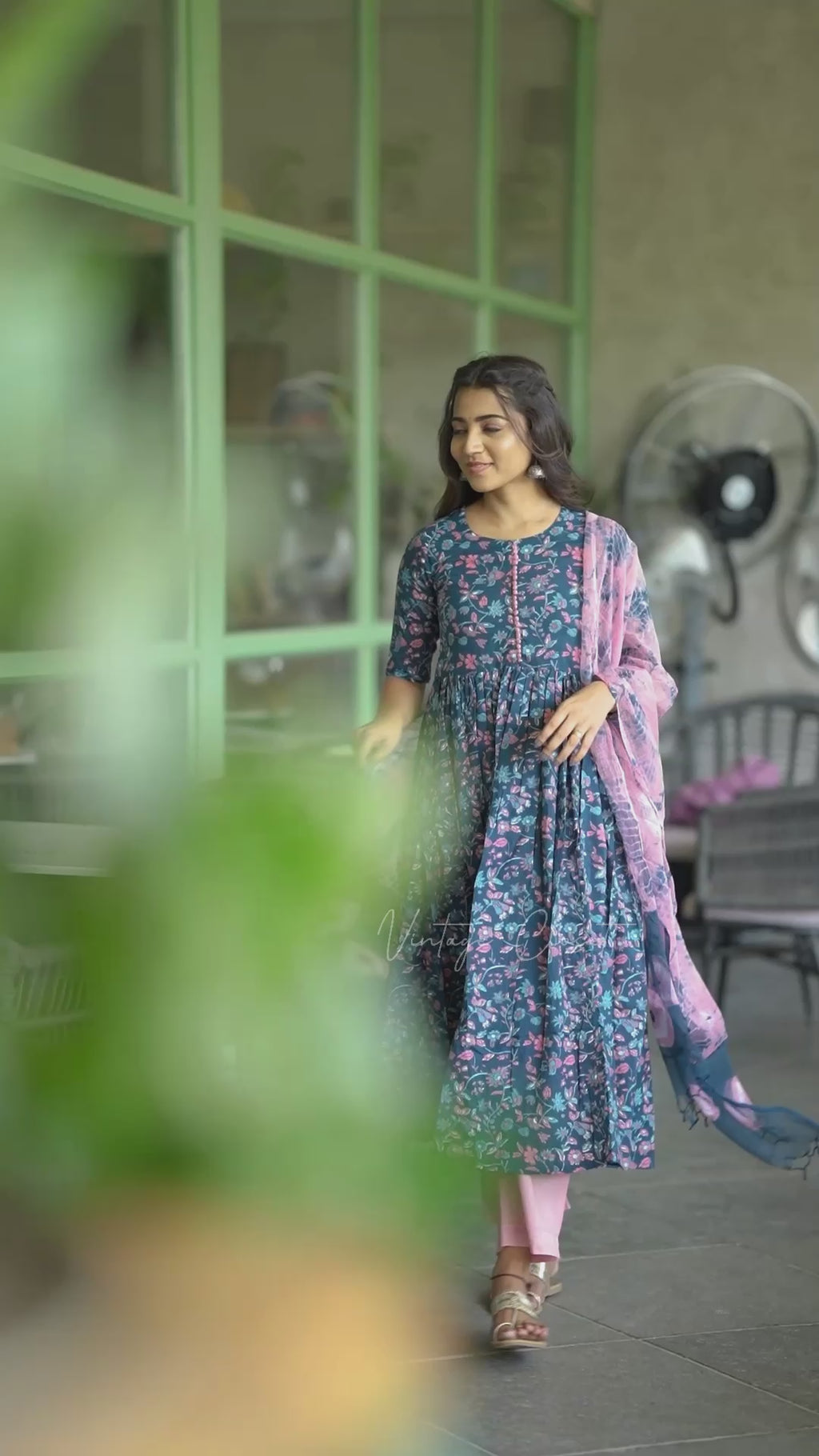 Kurti with a V neckline Alia cut styled anarkali and gottapatti work