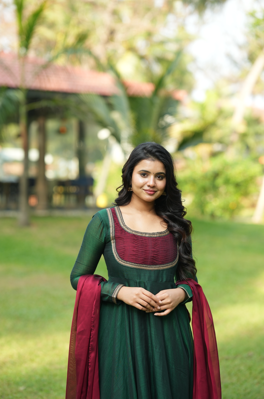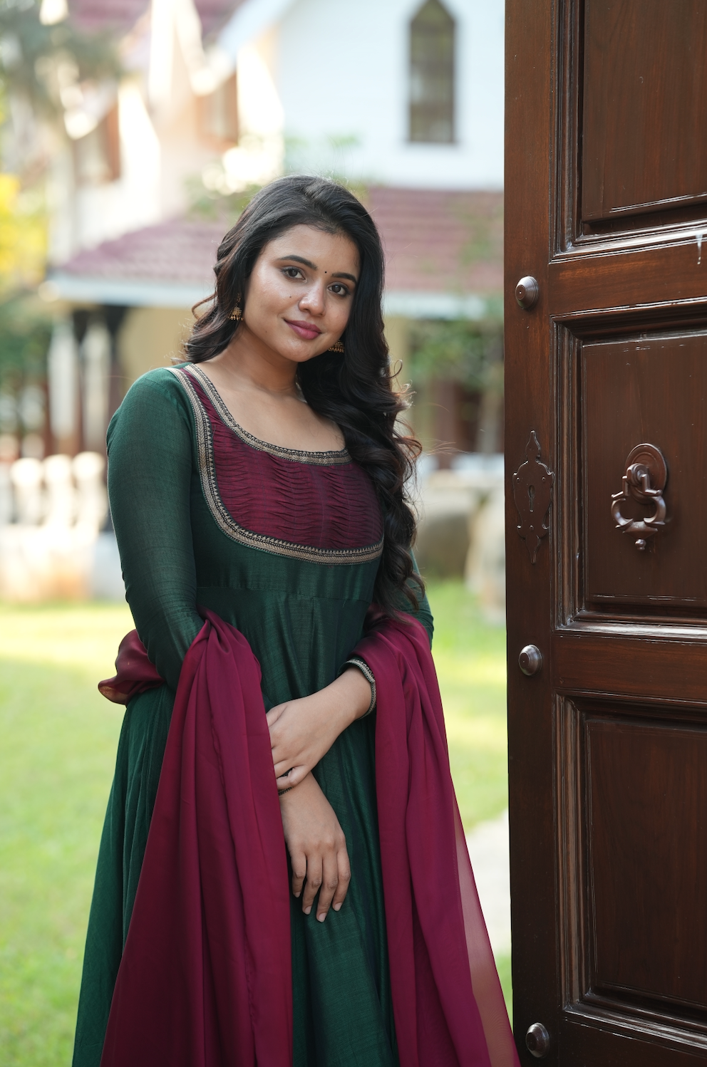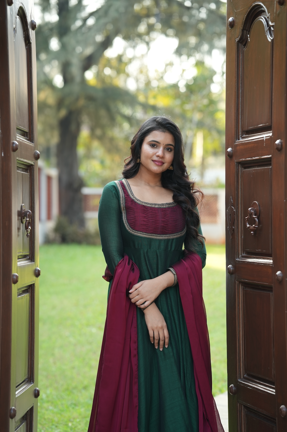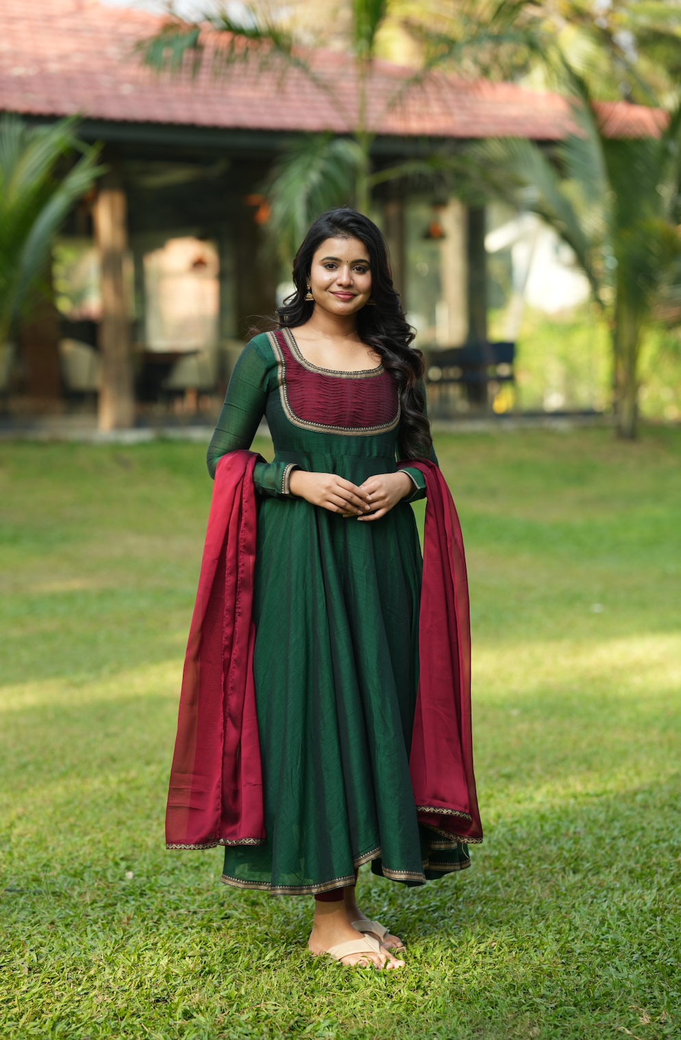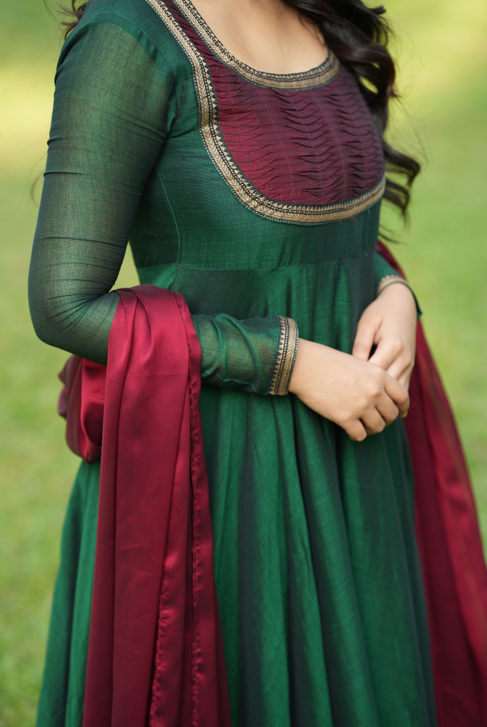 Dupatta- complemented by a contrasting dupatta featuring a two-sided border