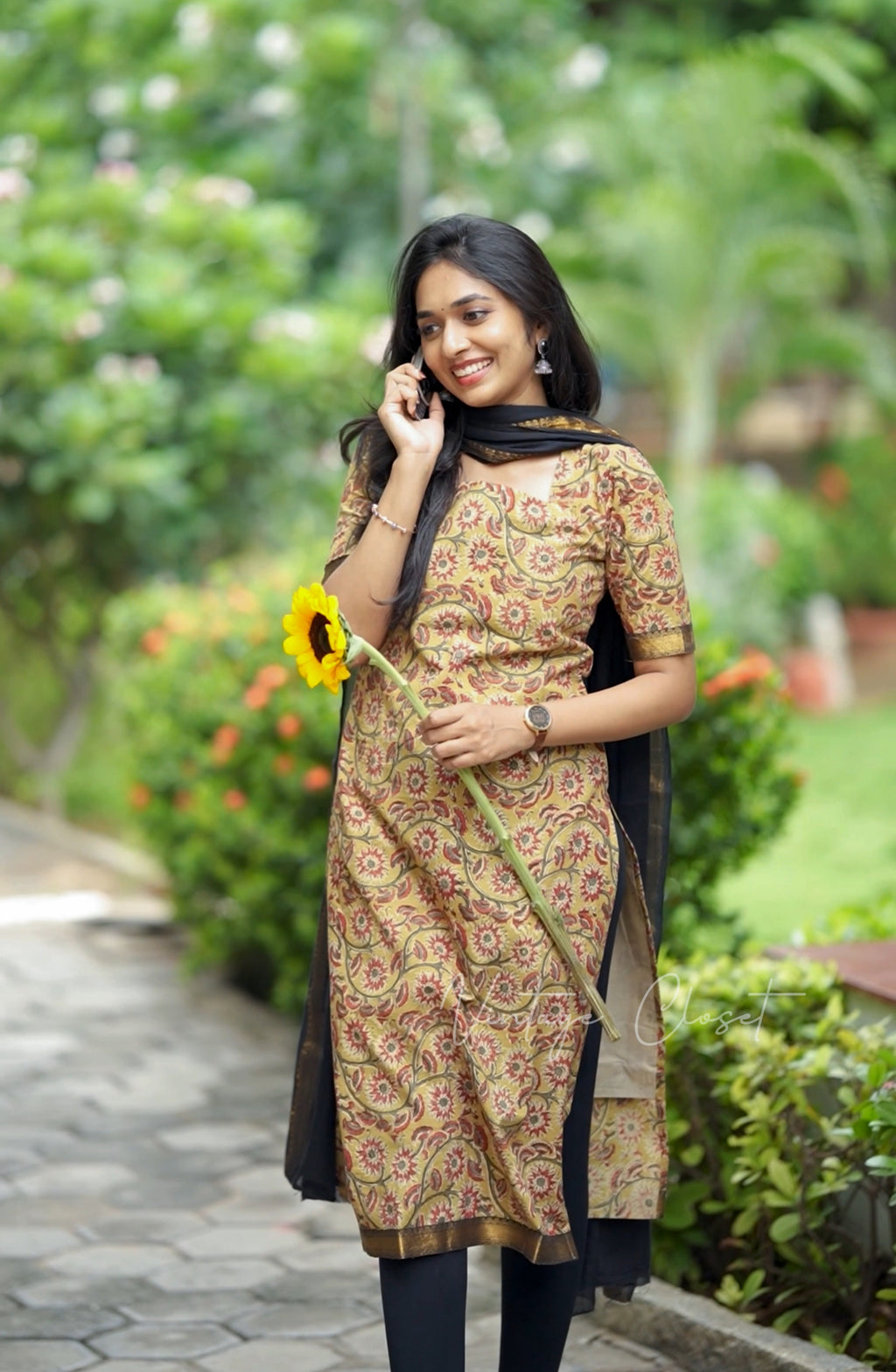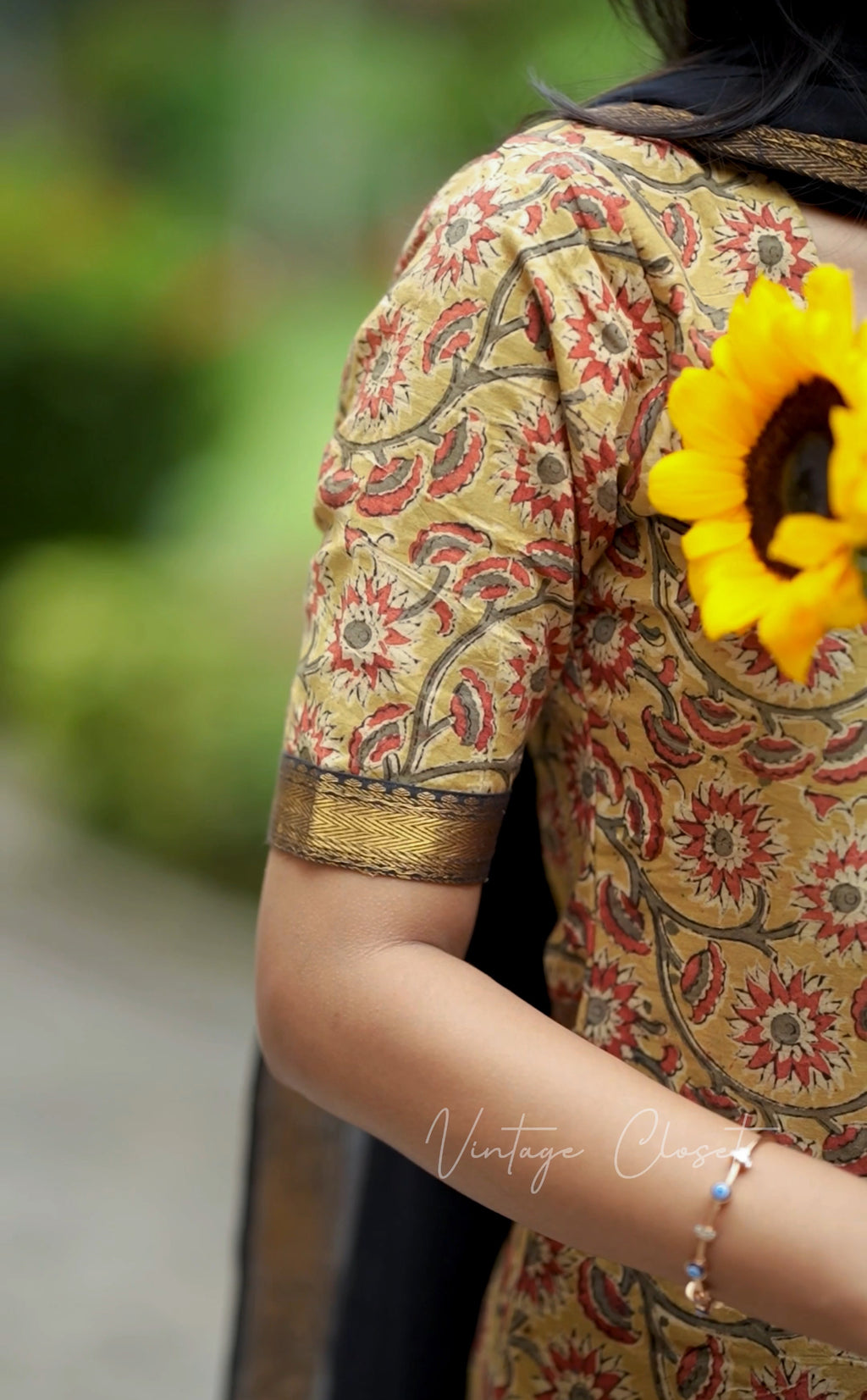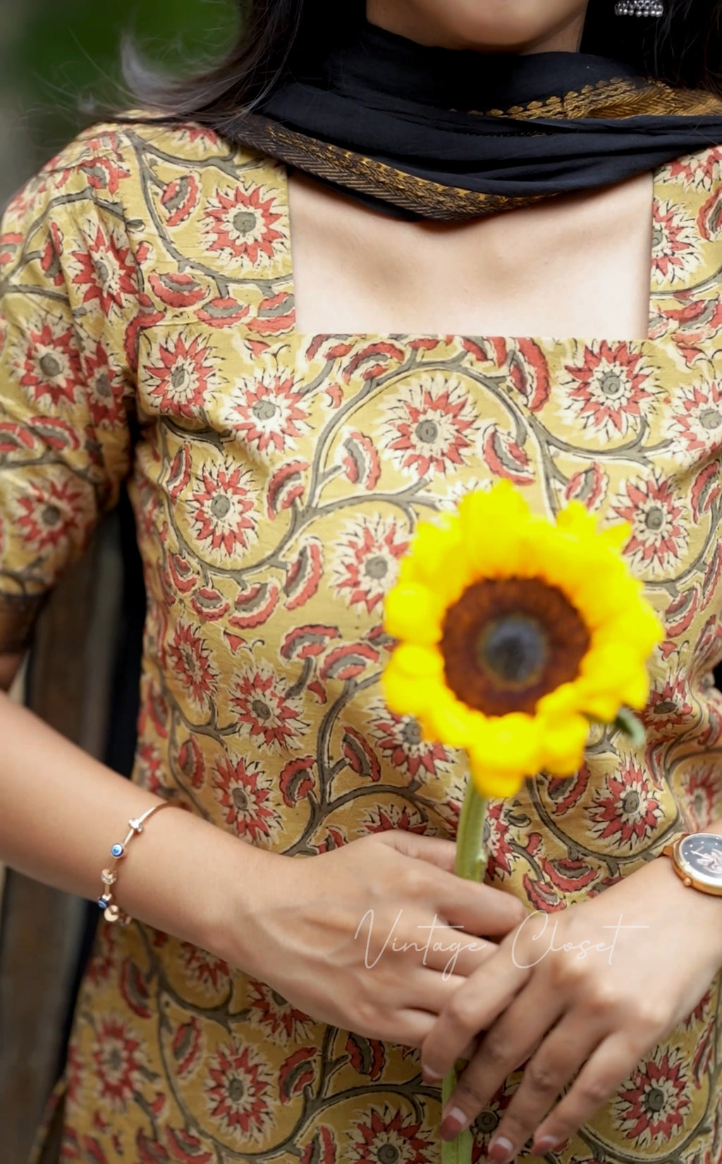 Floral kalamkari vanaspathi print elbow length sleeve cotton kurta