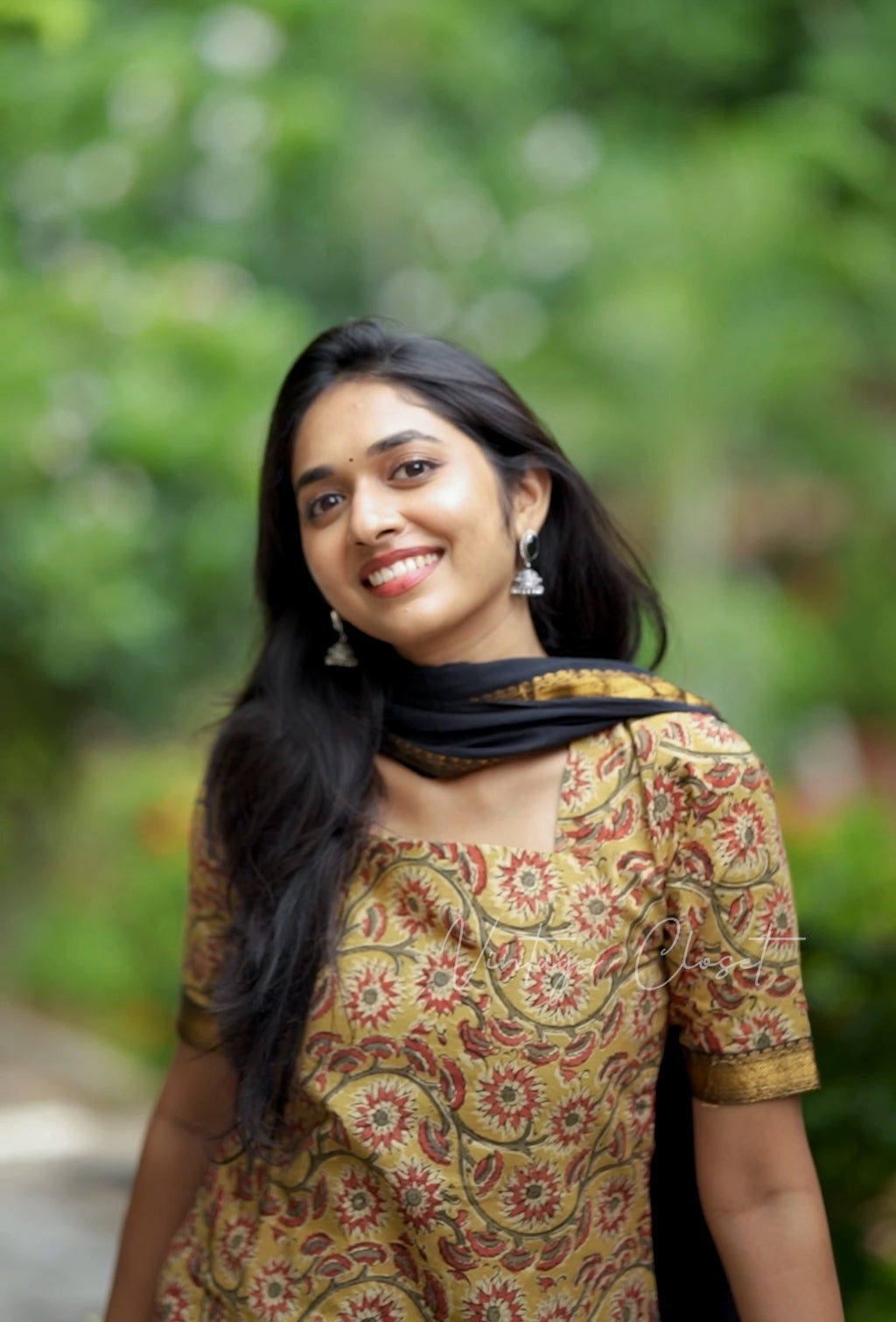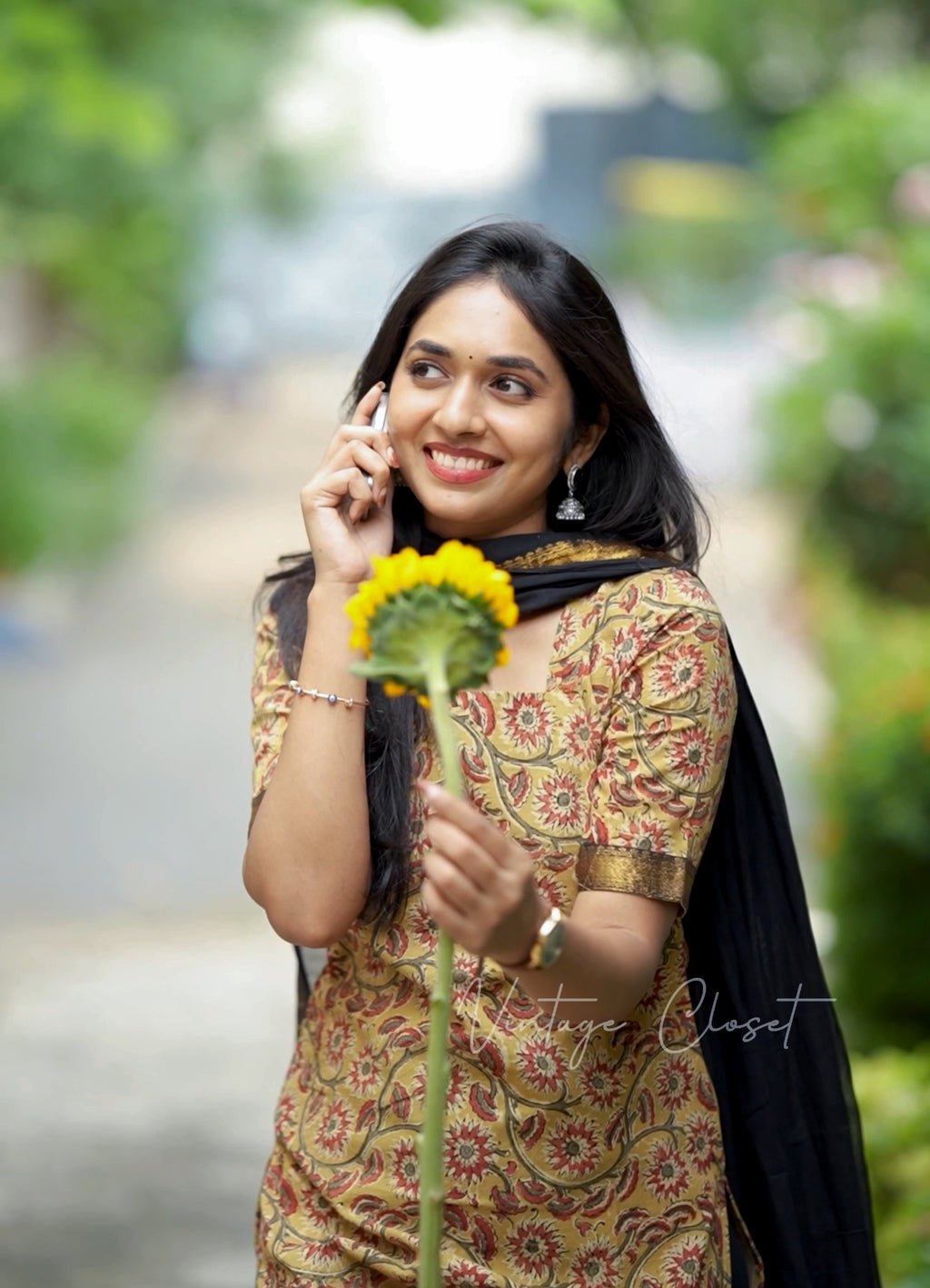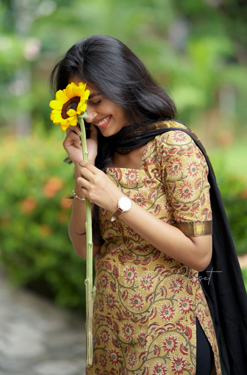 Floral kalamkari vanaspathi print elbow length sleeve cotton kurta