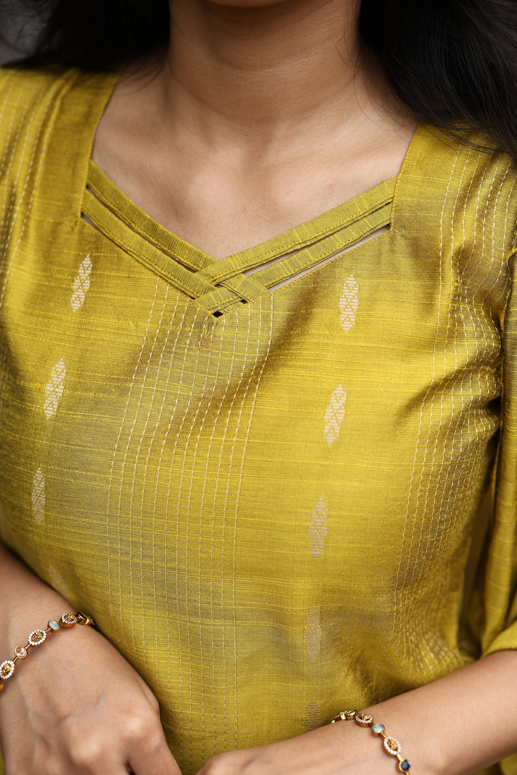 the perfect choice for any occasion, particularly Diwali. Its versatility and traditional design make it a must-have for any wardrobe. Add a touch of color with its unique knot neckline detailing, and celebrate this Diwali in style.