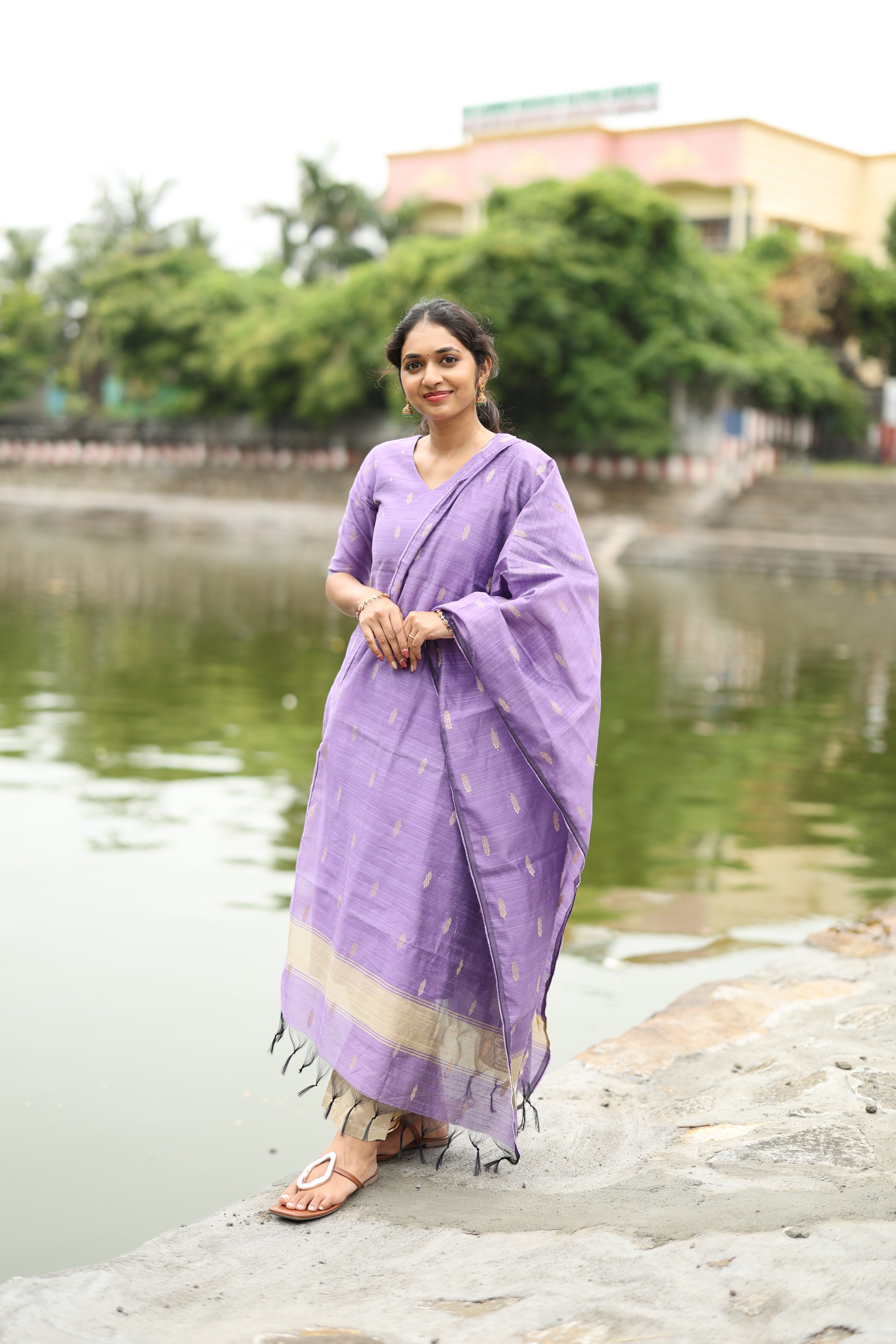 Provided with minimal neckline , and elbow length sleeves with a palazzo bottom and Full size dupatta
