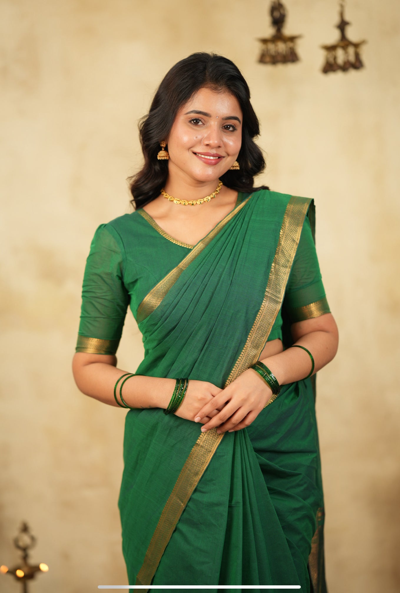 Pure-handwoven mangalagiri cotton saree with running blouse