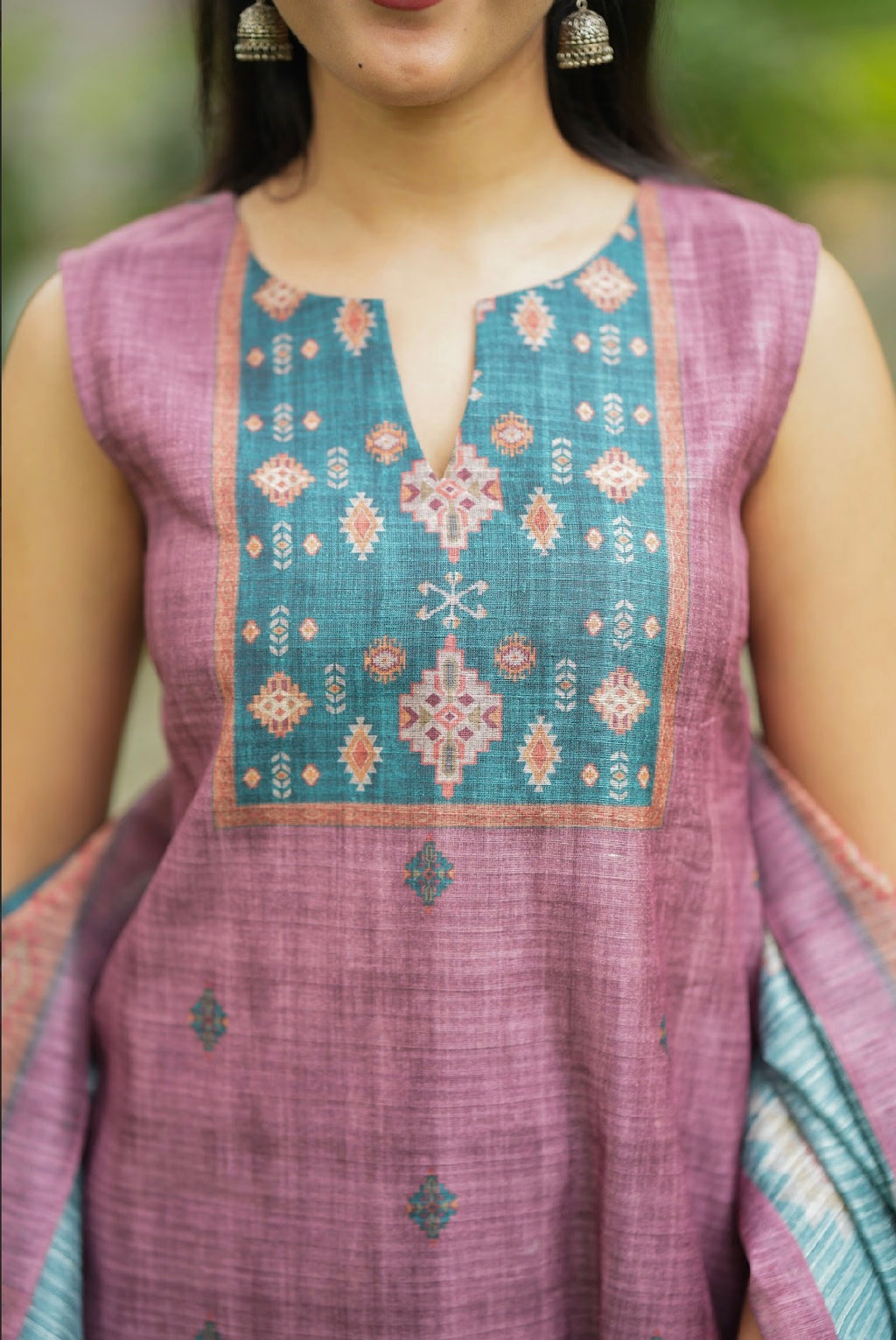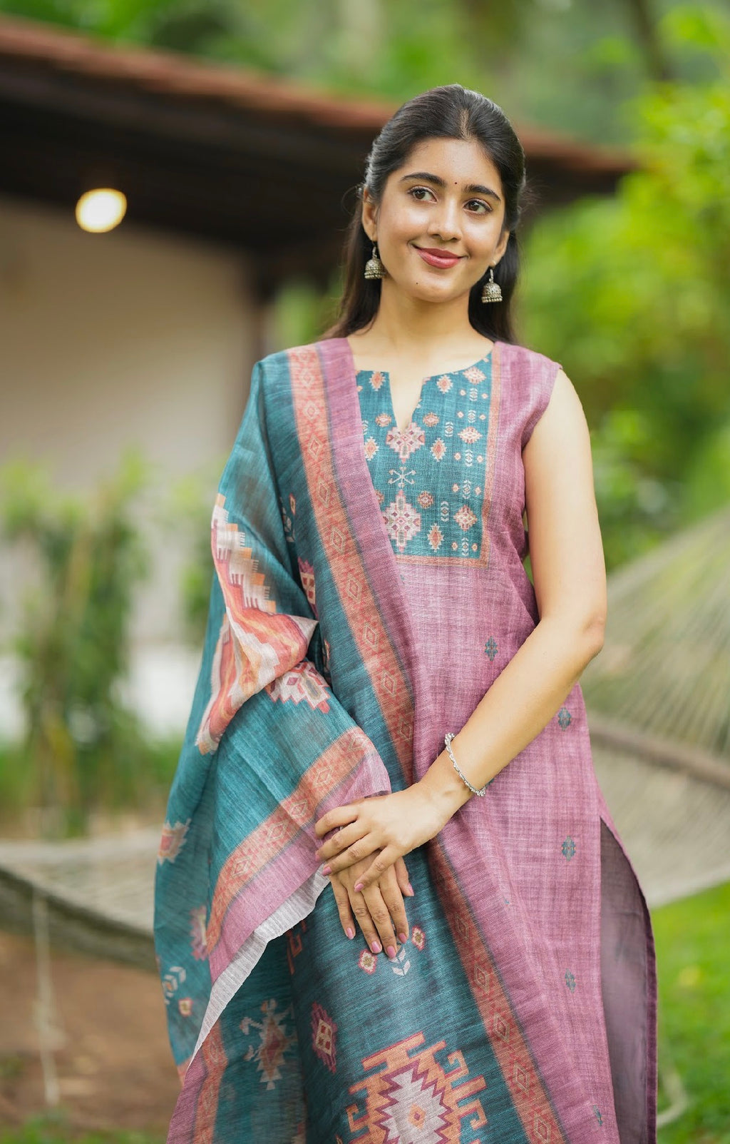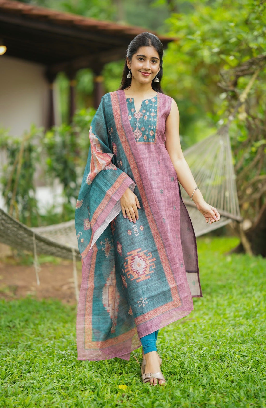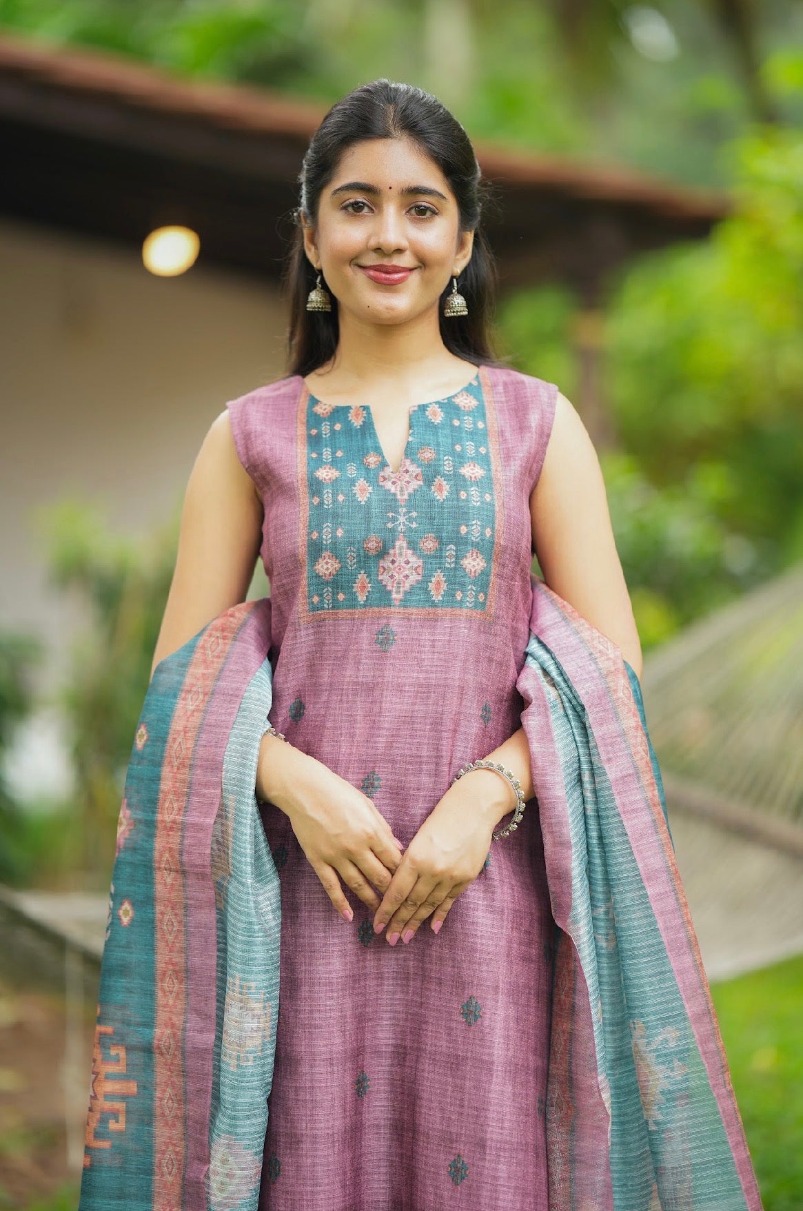 Kurti comes with minimal neckline and sleeveless (attached elbow length sleeves)
