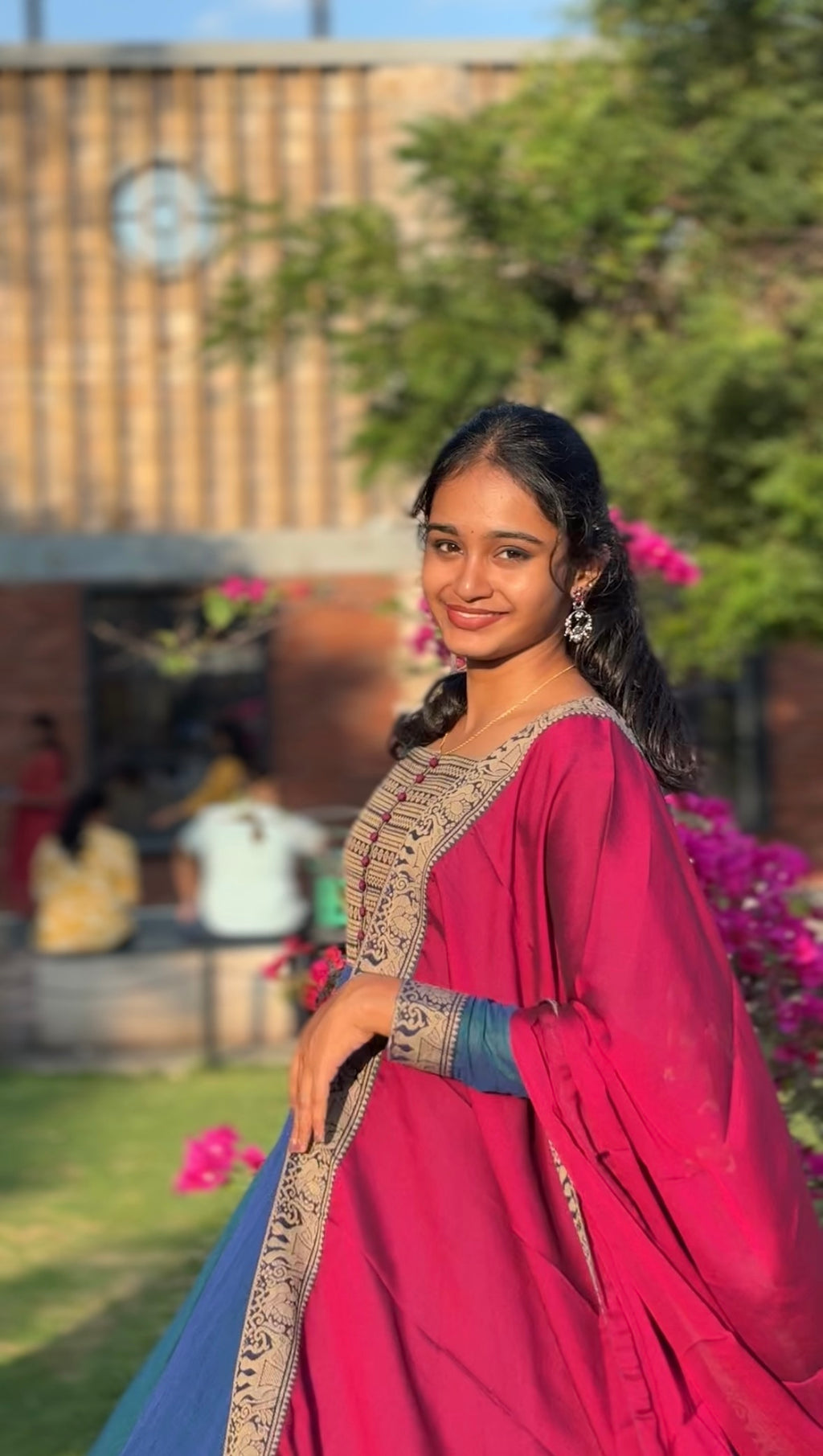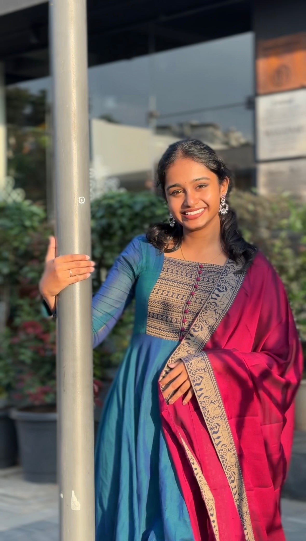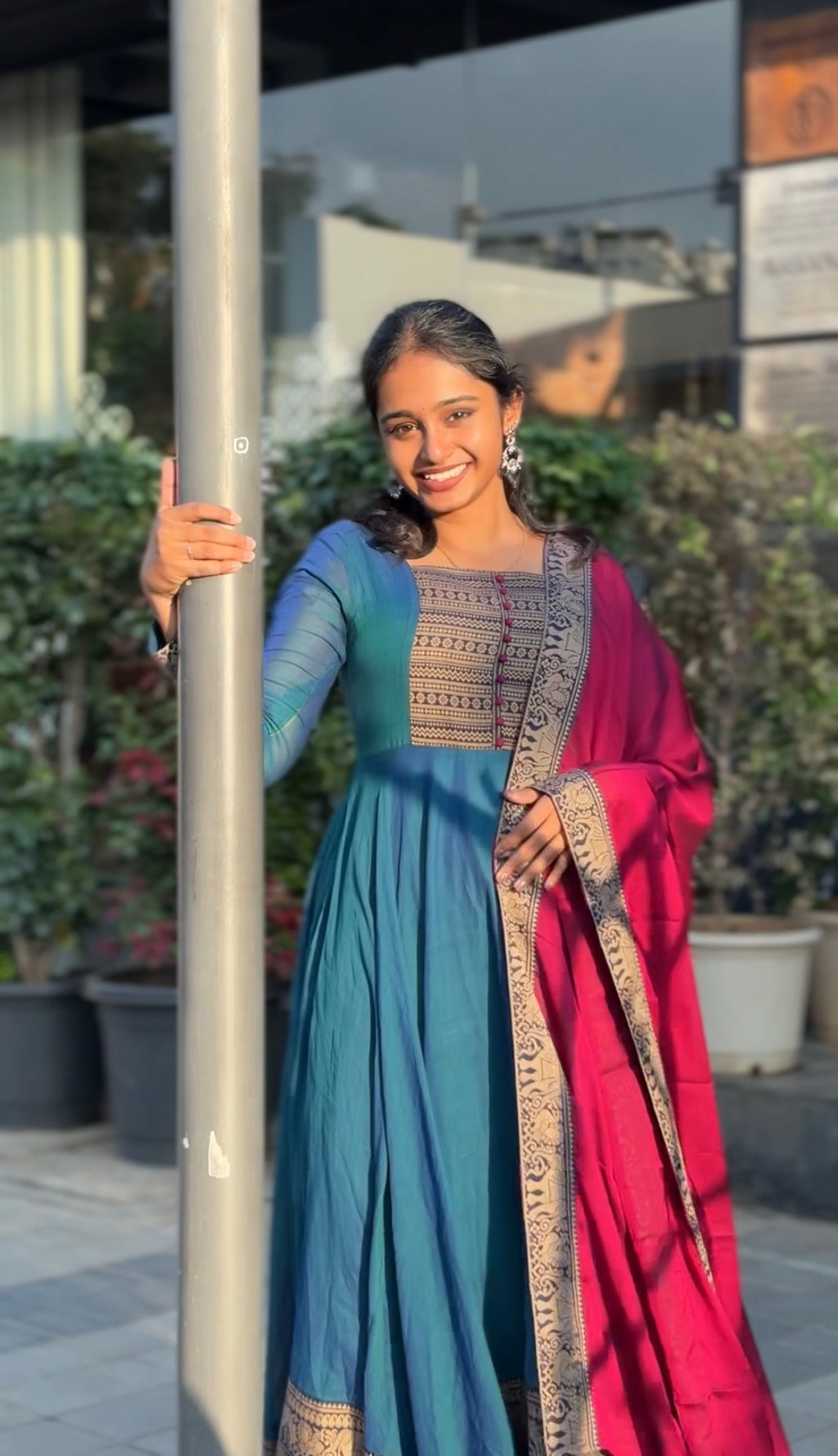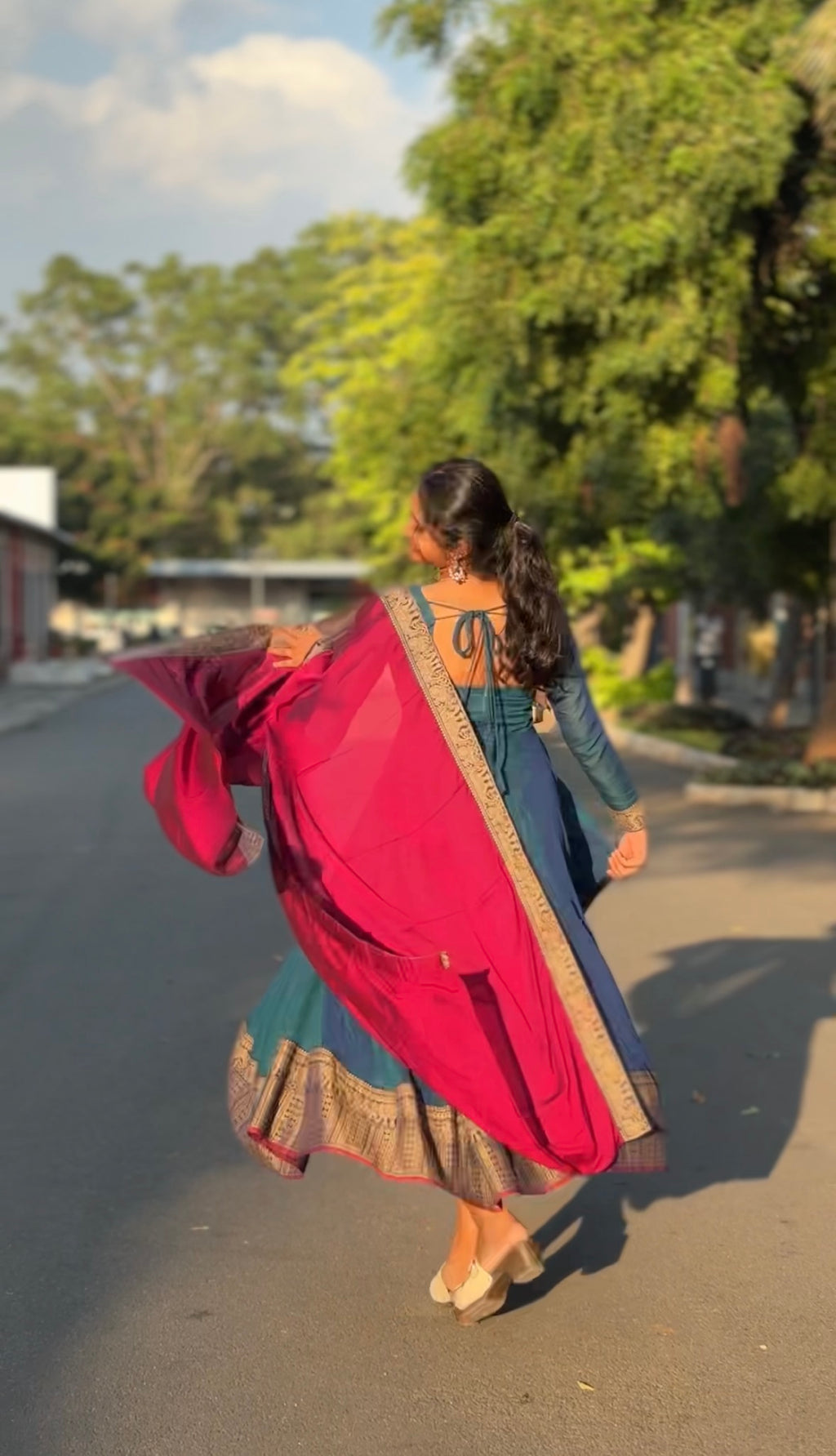Elephant border design woven reference handloom Anarkali kurti with a striking temple big border and attached cotton lining