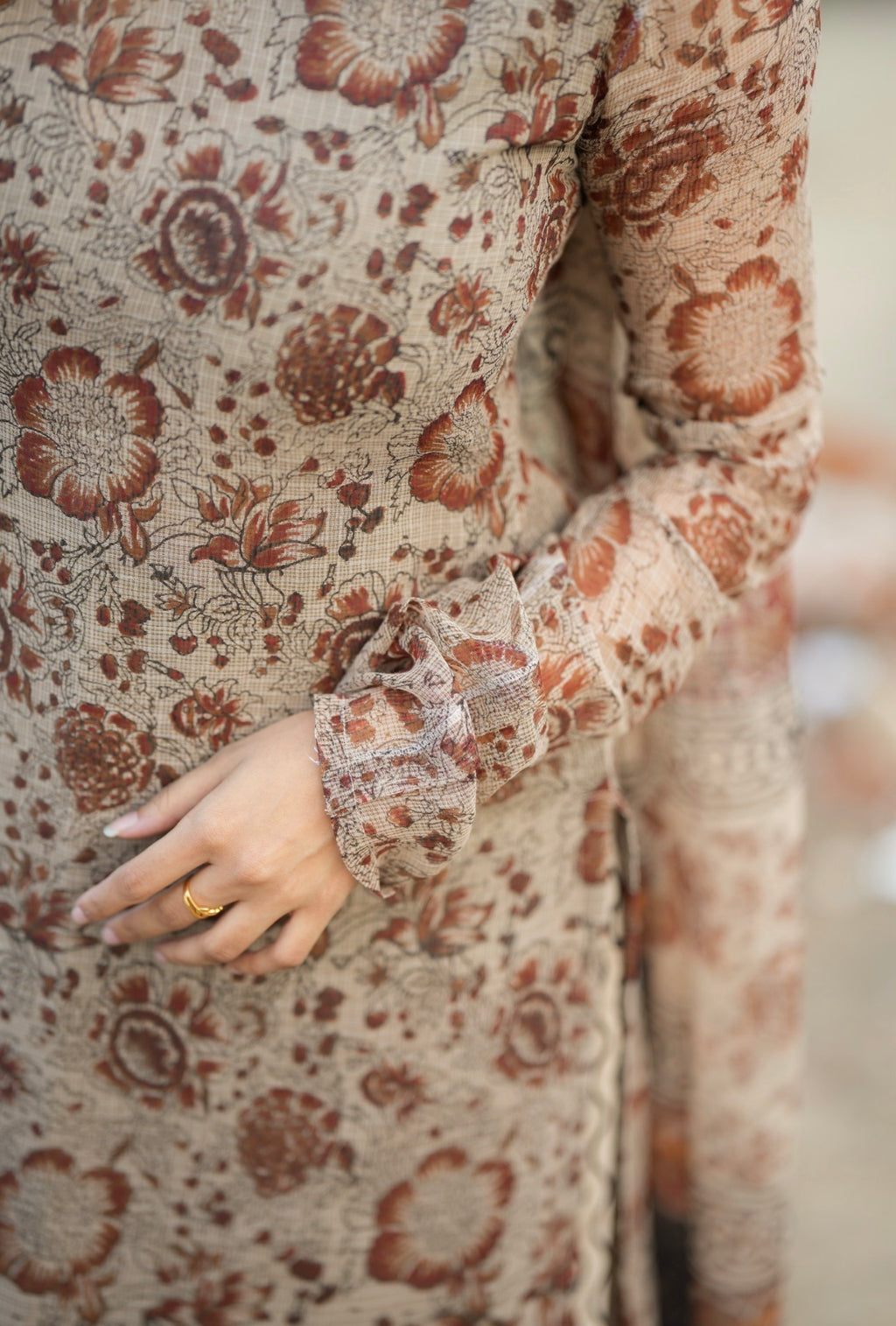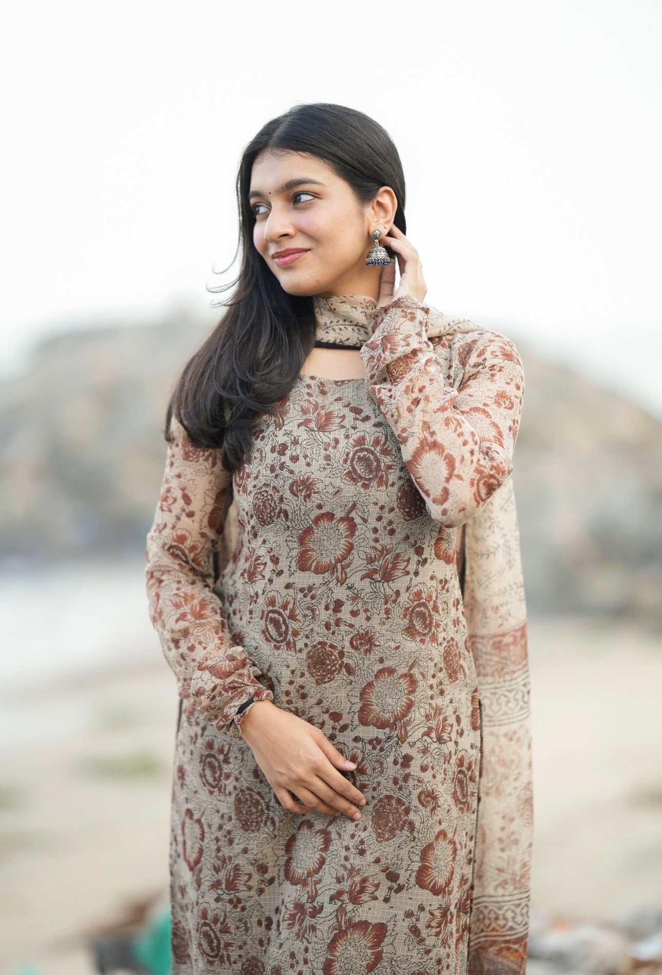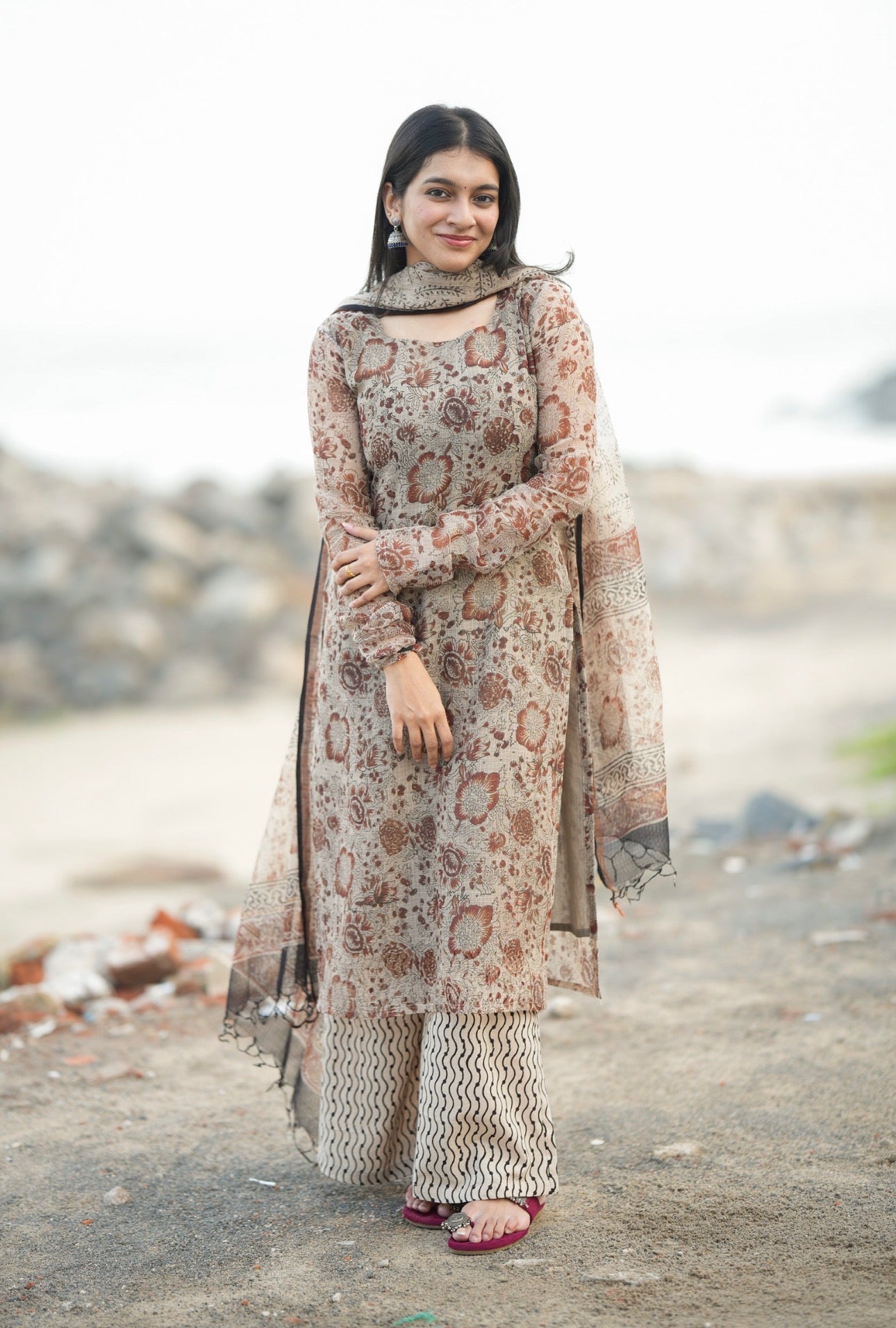 Paired with cotton block print motif bottom and full size soft kota dupatta
