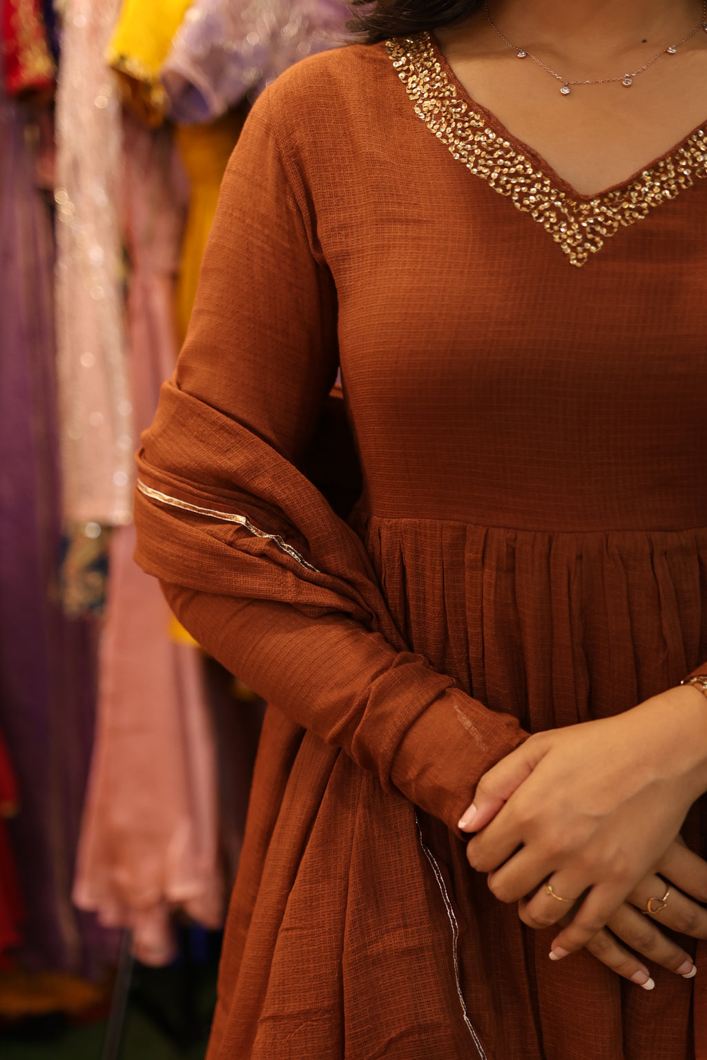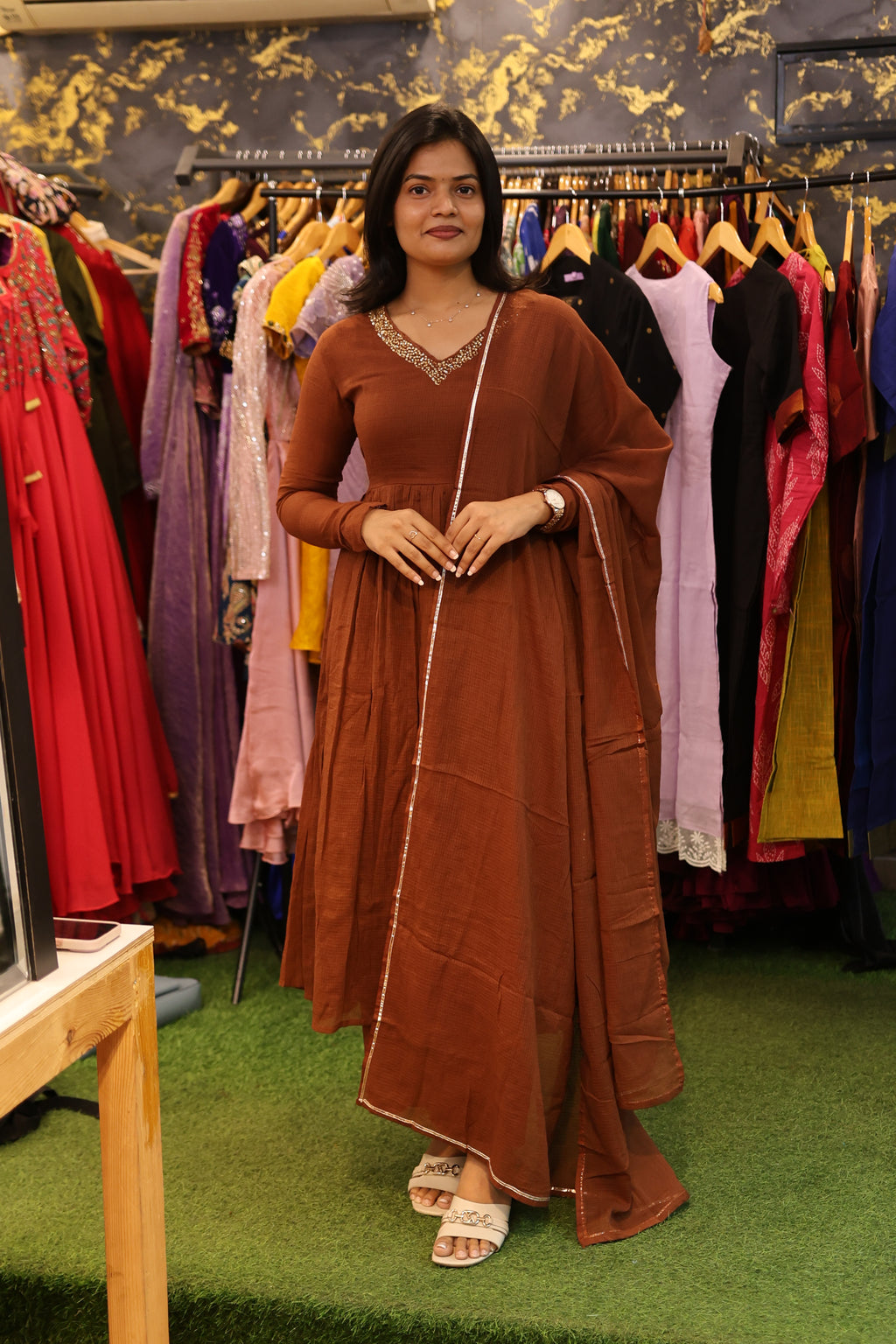 Pure KOTA kurti with handwork detailing paired with straight cotton bottom and full size kota dupatta comes with attached borders